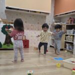 ポットン落としやパズル、ジェンが積みなど、指先でつまんで穴に入れたり、周囲の絵と合わせて型にはめたり、一つずつ丁寧に積み上げたりと集中しながら楽しんでいます。
