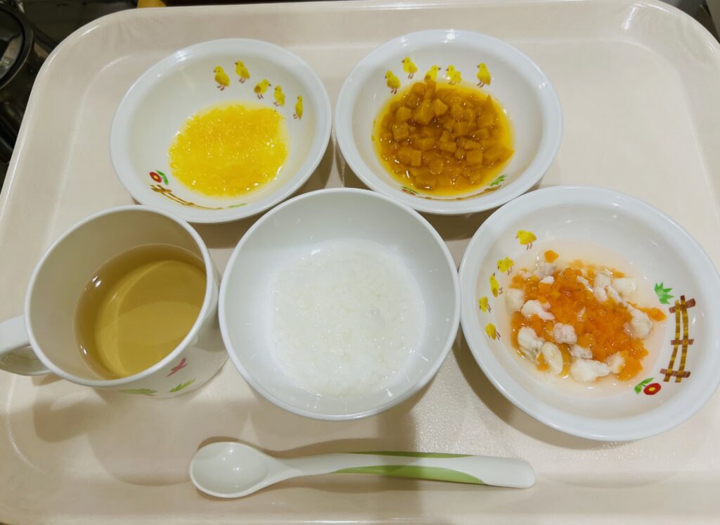 7分がゆ/タラのだし煮/かぼちゃのほくほく煮/オレンジ