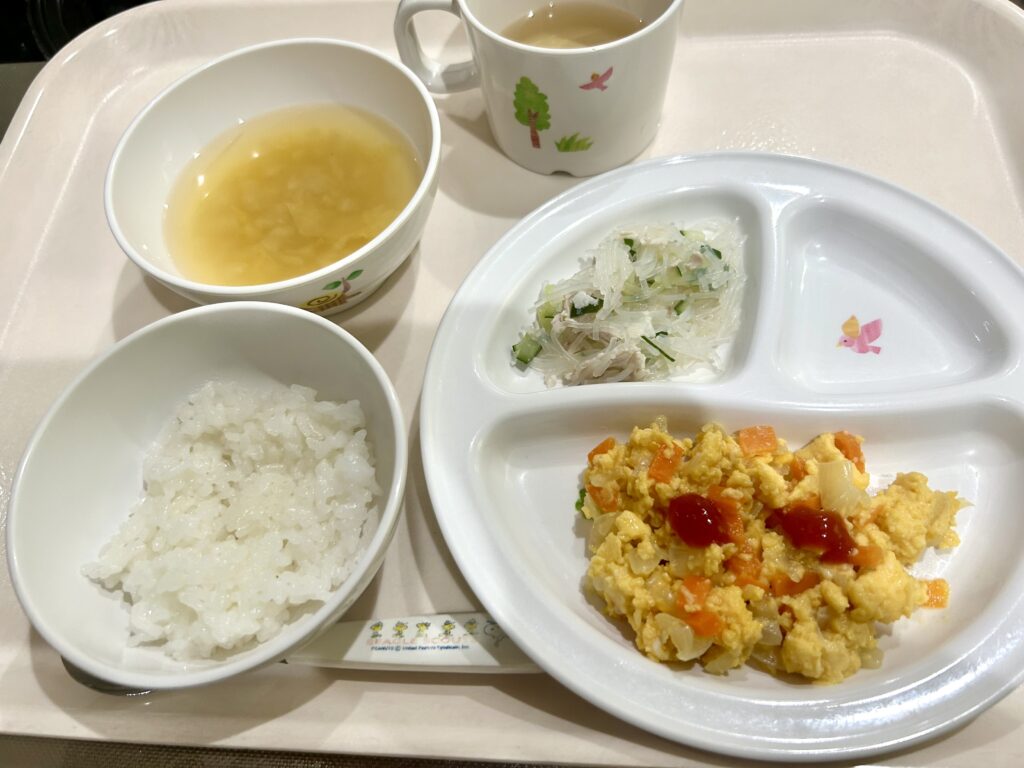 ご飯/スクランブルエッグ/豚しゃぶ春雨サラダ/みそ汁
