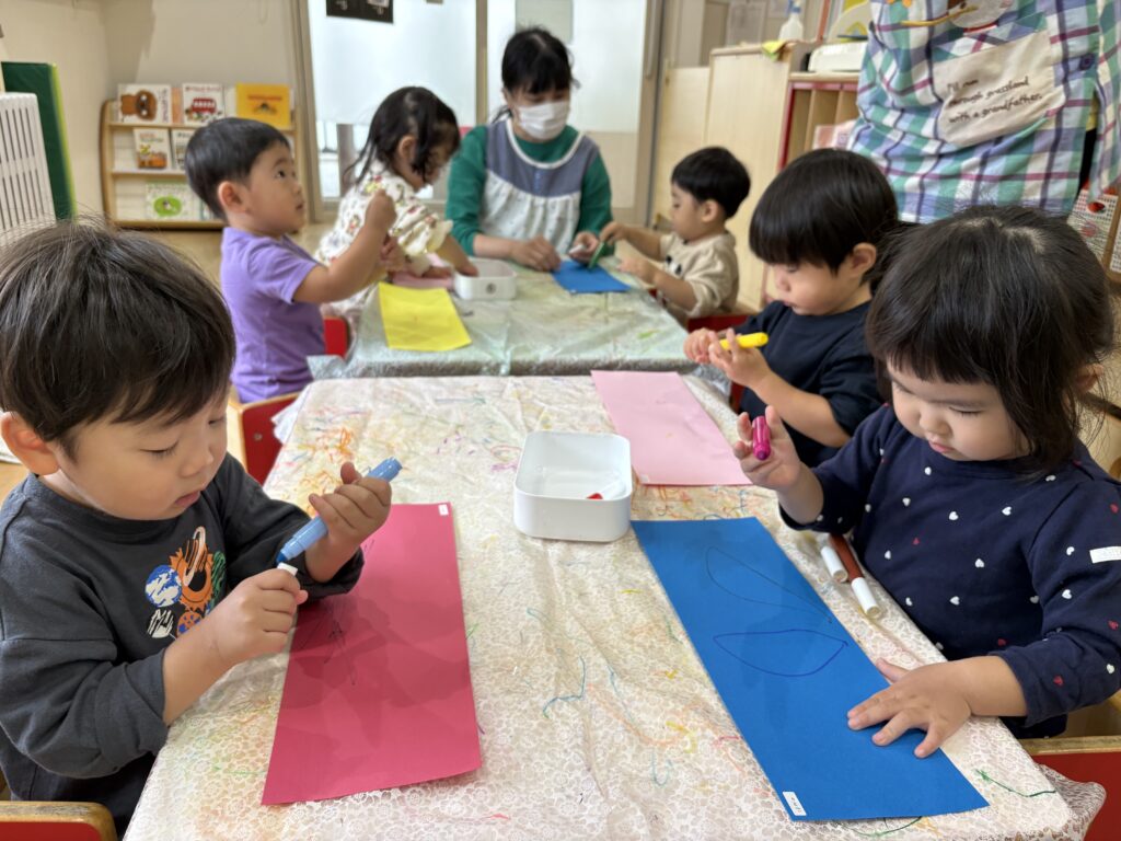お部屋でのお絵描きでは、みんな色んな色を使って描いてましたよ!