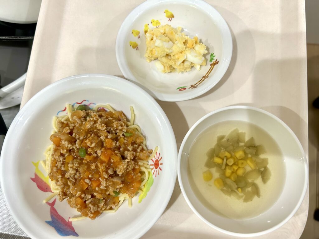 スパゲッティミートソース/ポテト玉子サラダ/スープ