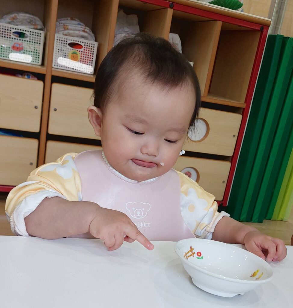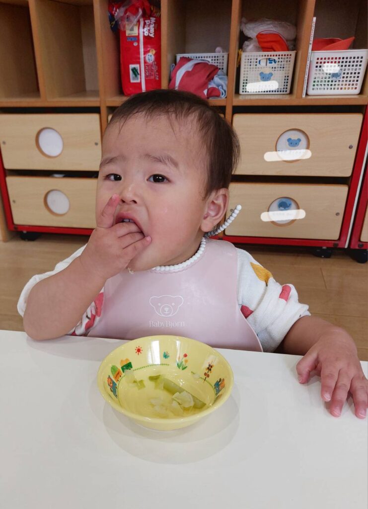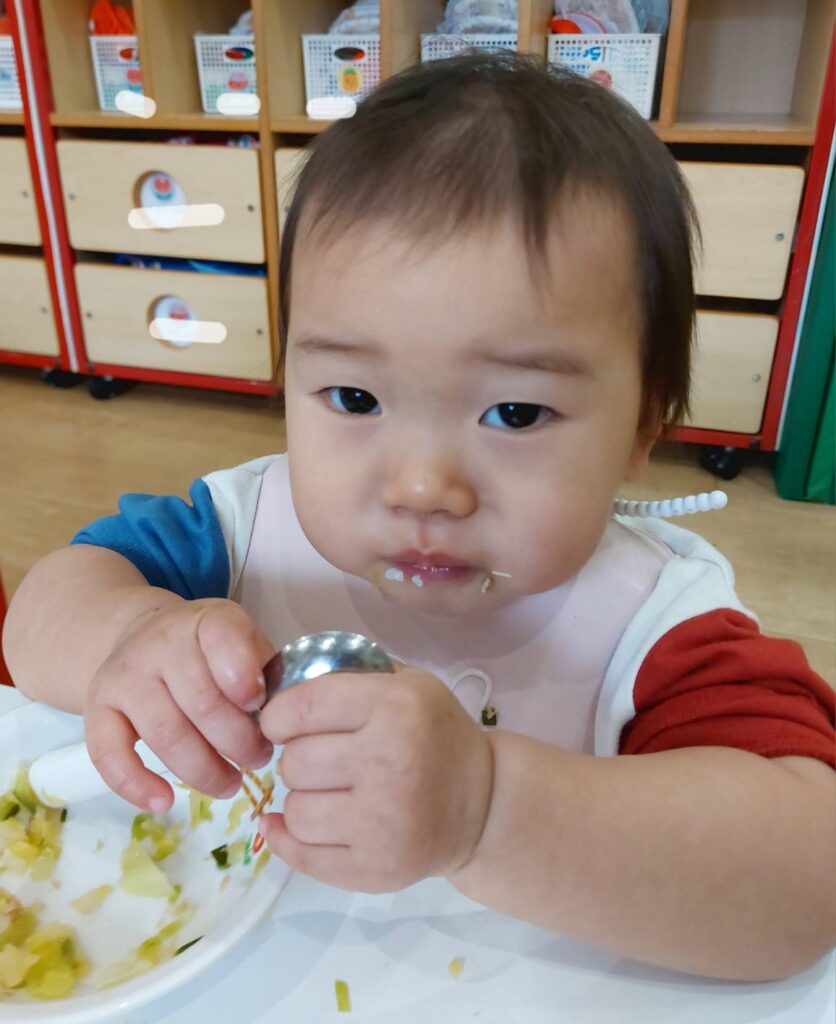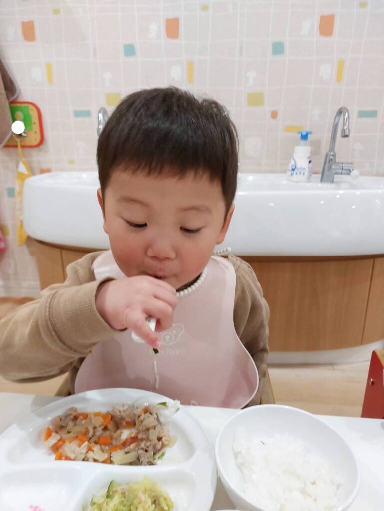 うさぎぐみ、ぱんだぐみのお友だちは、スプーンですくってパクリ✨✨と上手に食べていますよ。