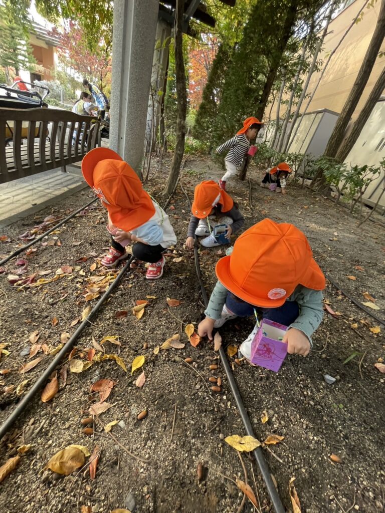 早速どんぐりを見つけて箱に入れている子どもたち☺