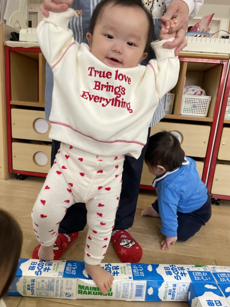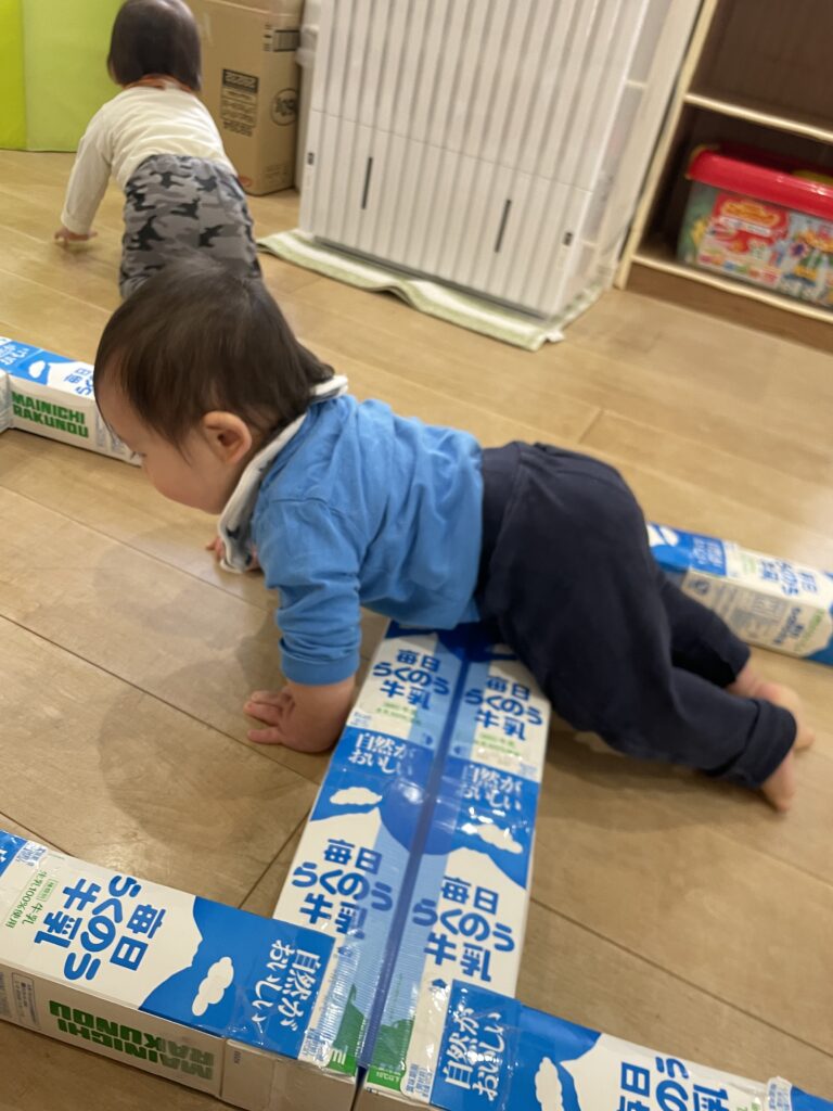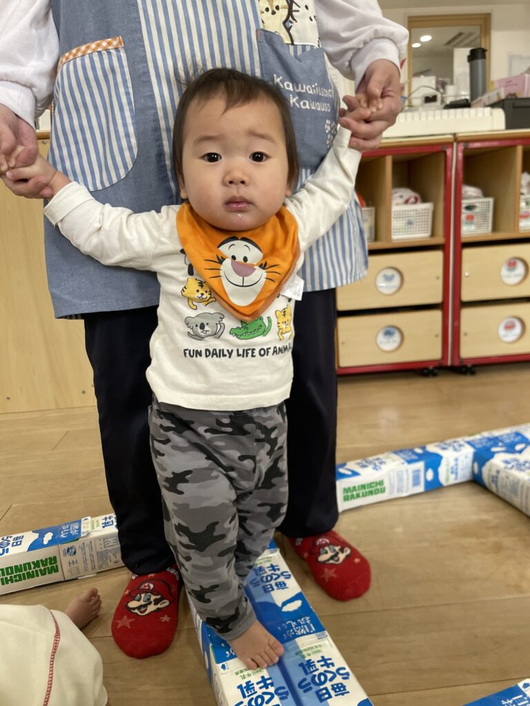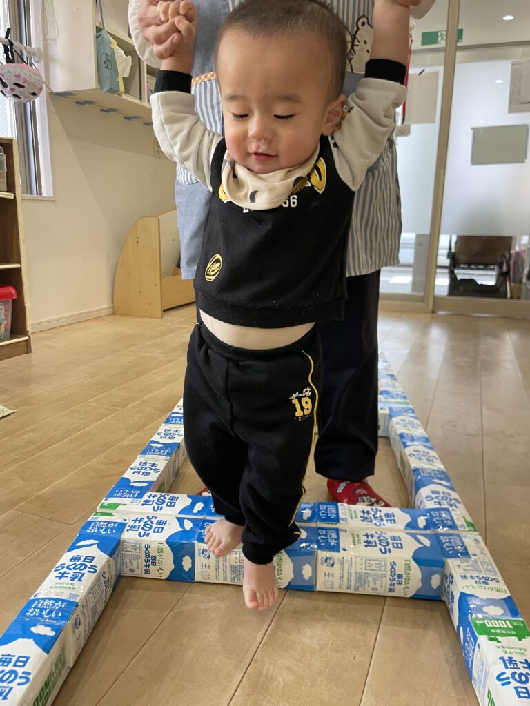 牛乳パックの段差があっても足をあげてみんな1歩ずつしっかりと歩けていました!