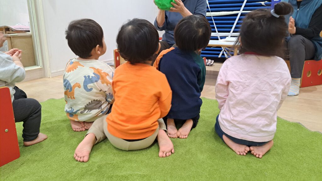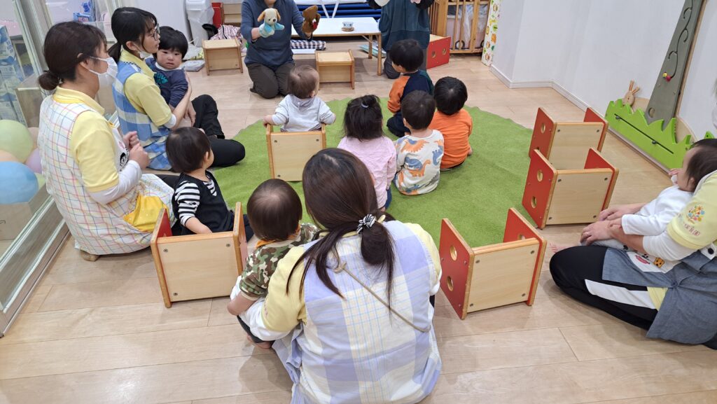 手遊びや絵本、ペープサートやエプロンシアター色んなお話があって、こども達は興味津々✨
