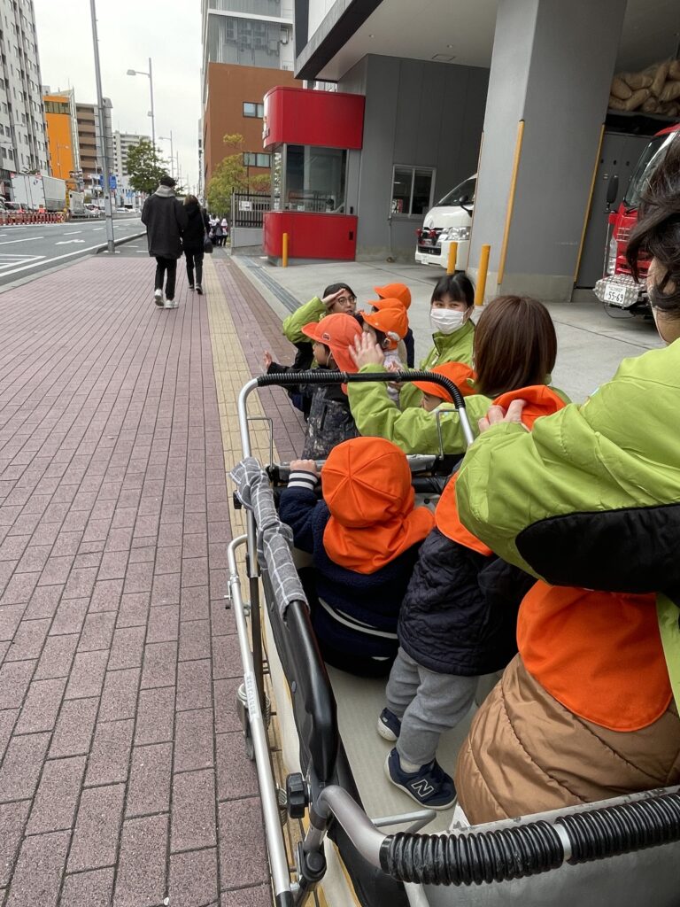 消防士さんが手を振ってくれると、みんな嬉しそうに振りかえしていました👋