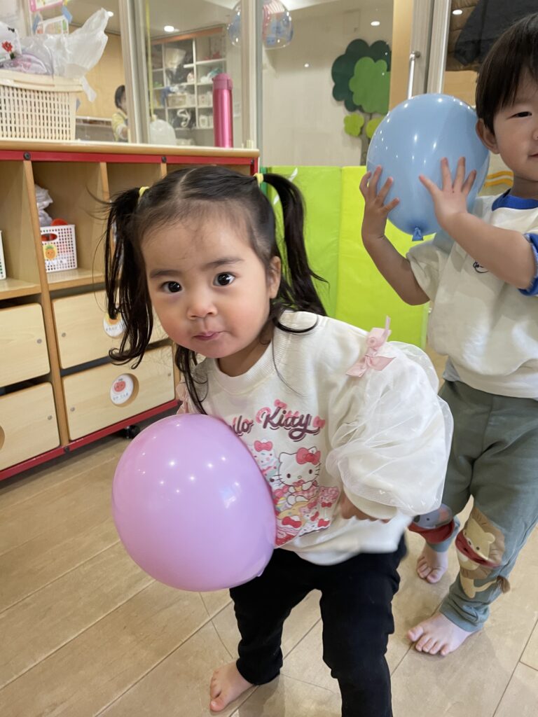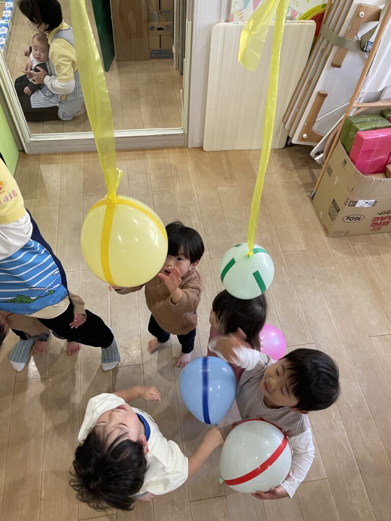 うさぎ組さんとぱんだ組さんは、風船で遊んでいました!