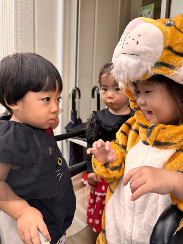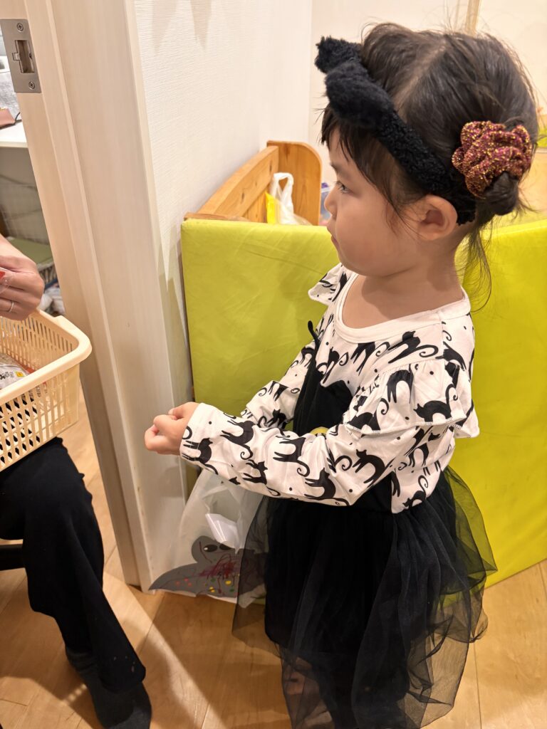 お部屋に戻り、「トリックオアトリート」の合言葉の確認をしてから、お菓子を貰いに行きました(˶'ᵕ'˶ )︎