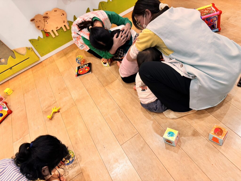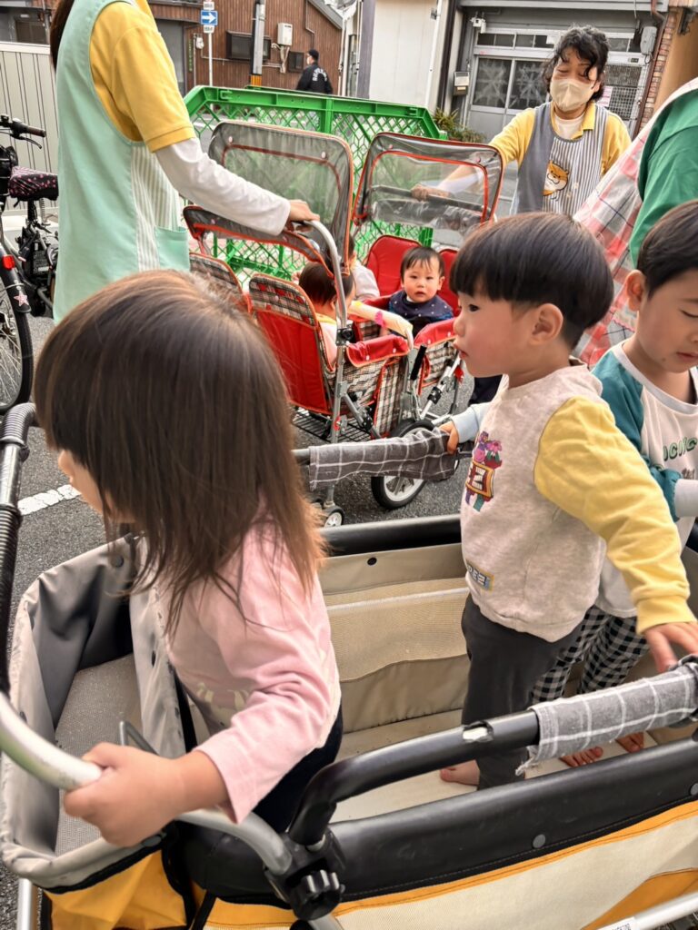 ひよこ組さんは“何が起きたの?”と不安になり、泣く事もありましたが、先生に抱っこしてもらえると安心した様子でした!