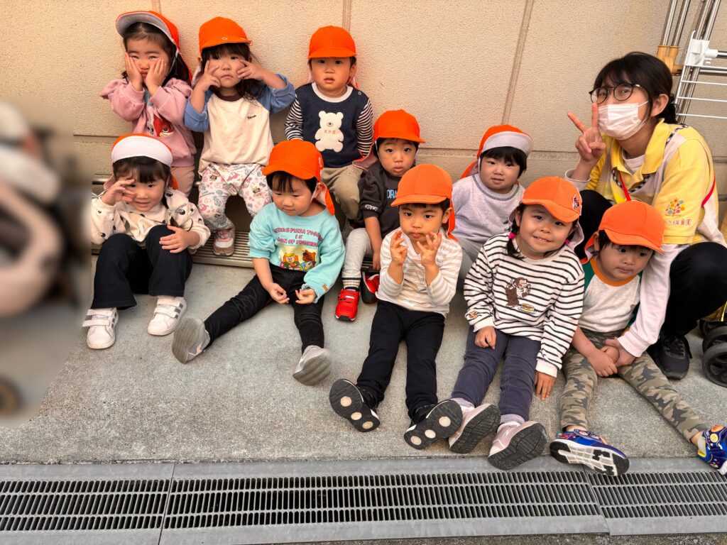 靴を履いたあとは、ぱんだ組・うさぎ組で集まっていました。カメラを向けるとそれぞれポーズをしてくれました📸