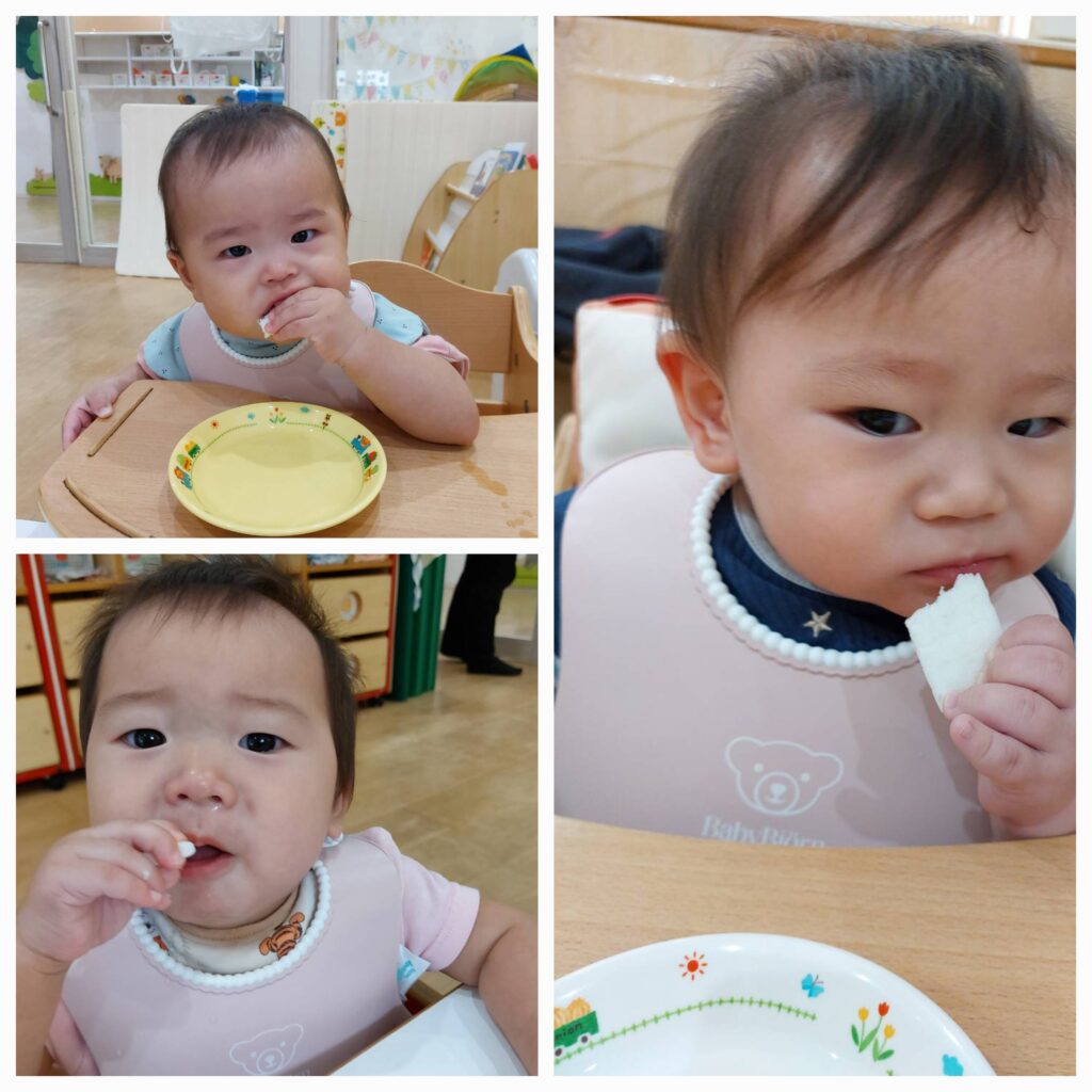 ハイハインを上手に手づかみで美味しそうに食べています。