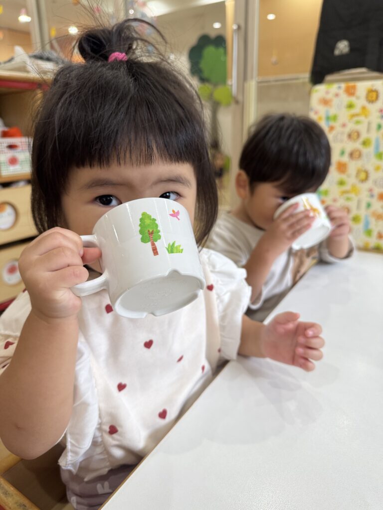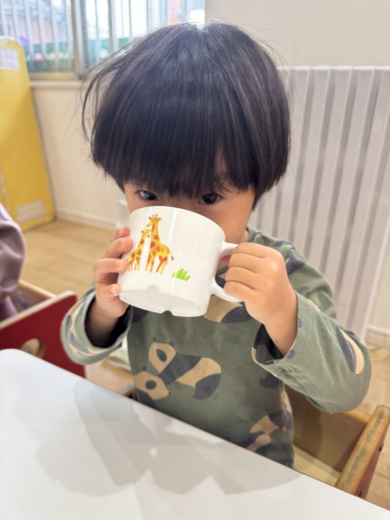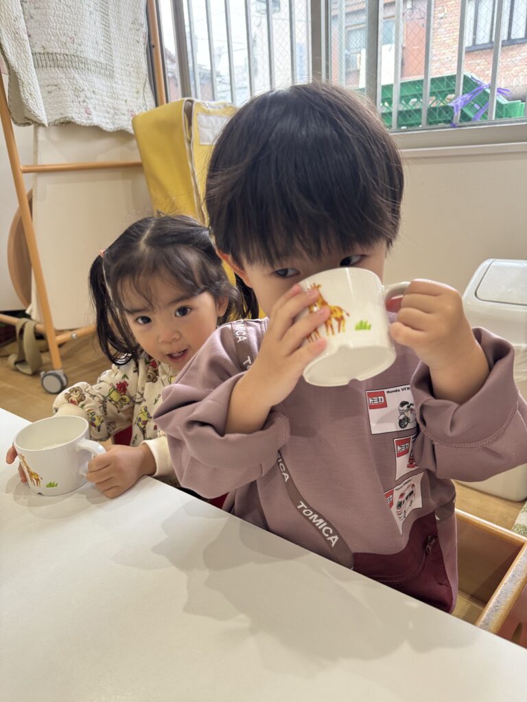 うさぎ組とぱんだ組の朝の牛乳を飲んでいる時の様子をご覧下さい🙌