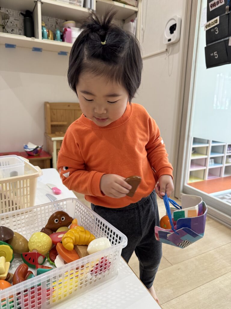 カゴを持ちお買い物を楽しむ子